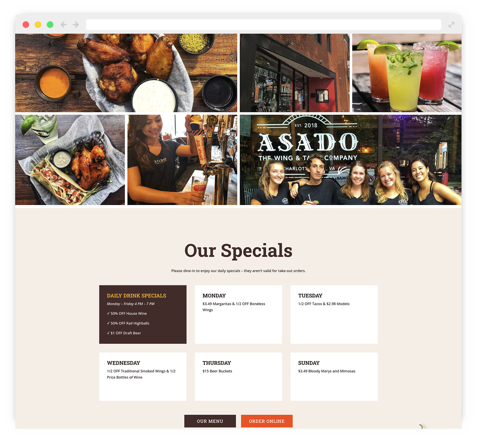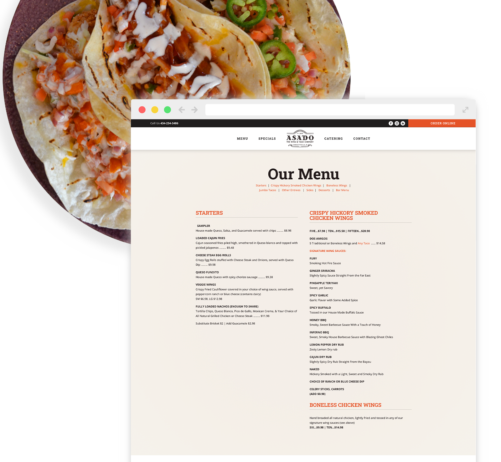 When Charlottesville’s Asado needed a dynamic new web presence, we were ready to get started. At L+R, we know the ingredients that make a great restaurant website: easy online ordering and a design that puts the food front and center.